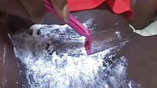黑人女同性恋者用手指抽插阴户,假阳具被插入