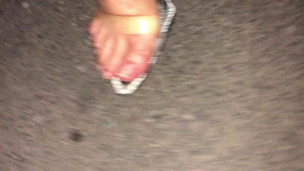 穿着尼龙紧身连衣裤和穿着透明绑带高跟鞋的蓝指甲在户外