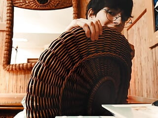 印度男孩在家里用管道玩乐并射在里面