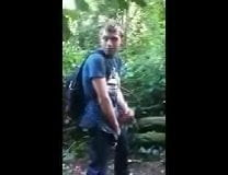 直男在工作楼梯上走来走去,他的鸡巴伸出来。