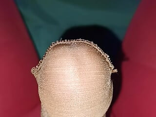 穿着连裤袜和连体泳衣的变装癖 - 娘娘腔穿着尼龙和氨纶展示隆起 - 恋足